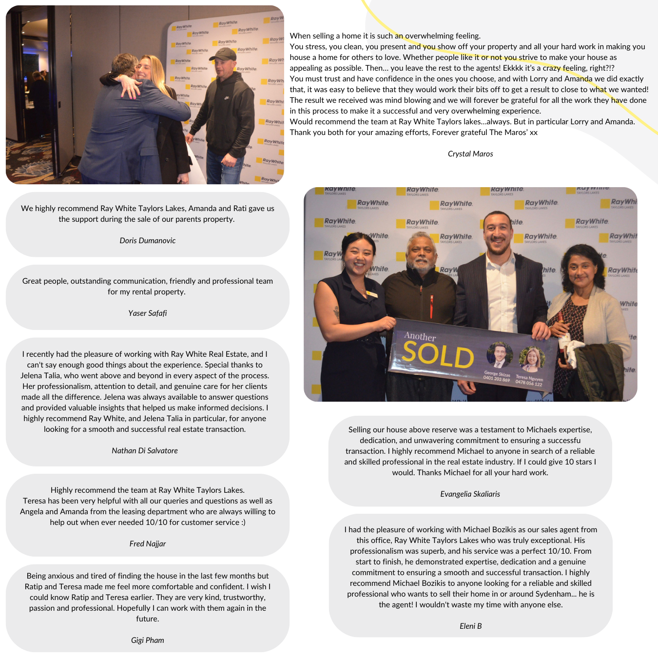“Isabella and Ray White Taylors Lakes has been providing us 5⭐️ excellent service thru out our lease agreement., easy to deal with and very professional. Thank you so much!” – Patrick Medina