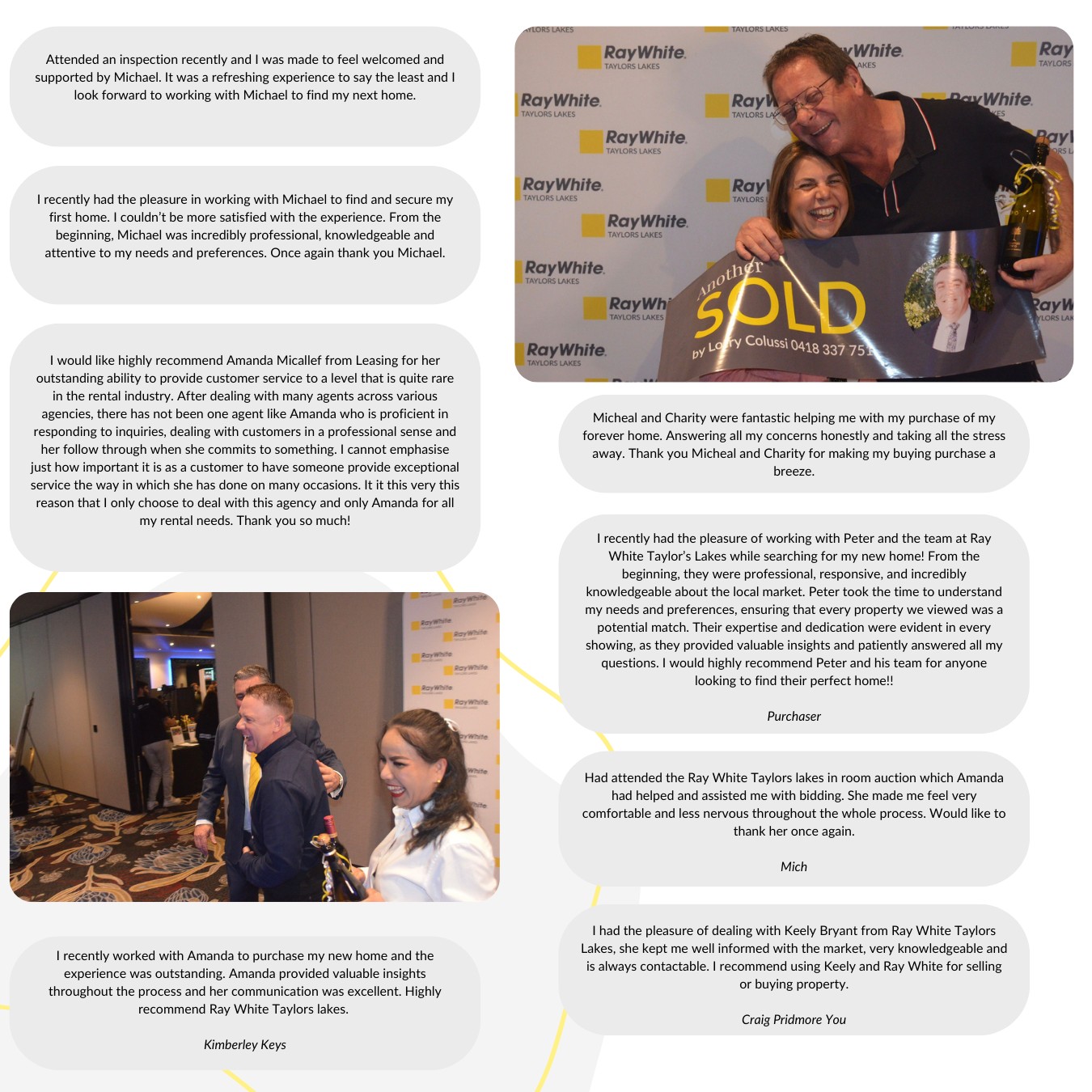 “WOW! I have dealt exclusively with Teresa Nguyen and Keely Bryant from Ray White Taylor’s Lakes, if I could give these women 10 stars I would. 10/10 service and professionalism second to none. Highly recommend.” – Kyle Bone