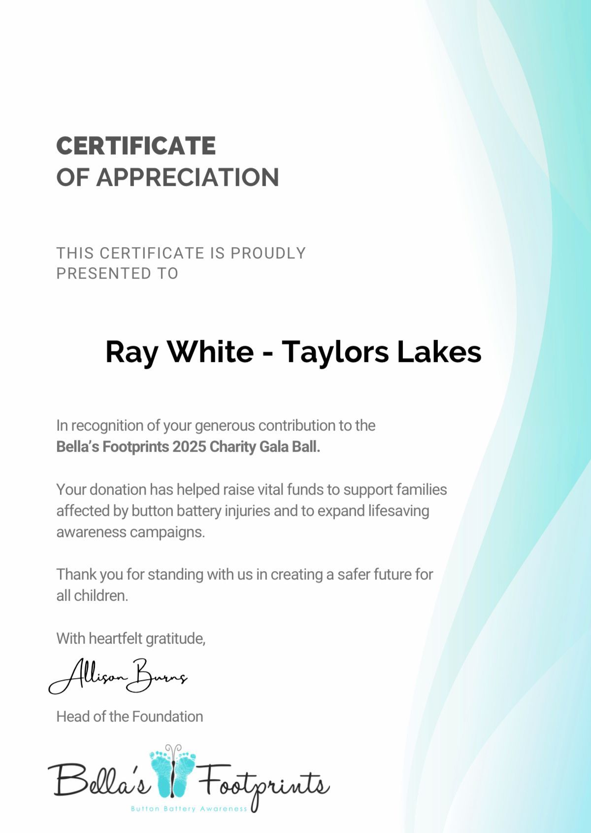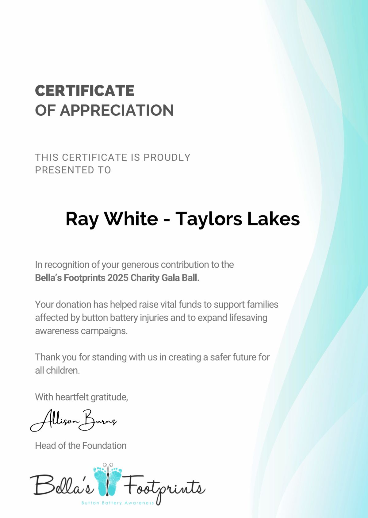 As a family owned and run business, we proudly support Bella’s Footprints in their mission.We believe that through increased awareness, improved product safety standards, and community engagement, we can prevent further tragedies and ensure a safer environment for our children.