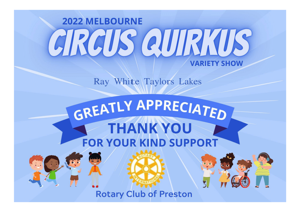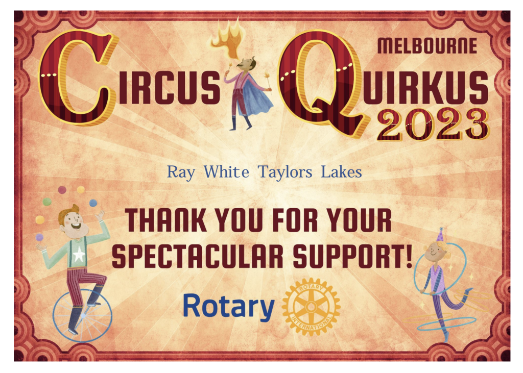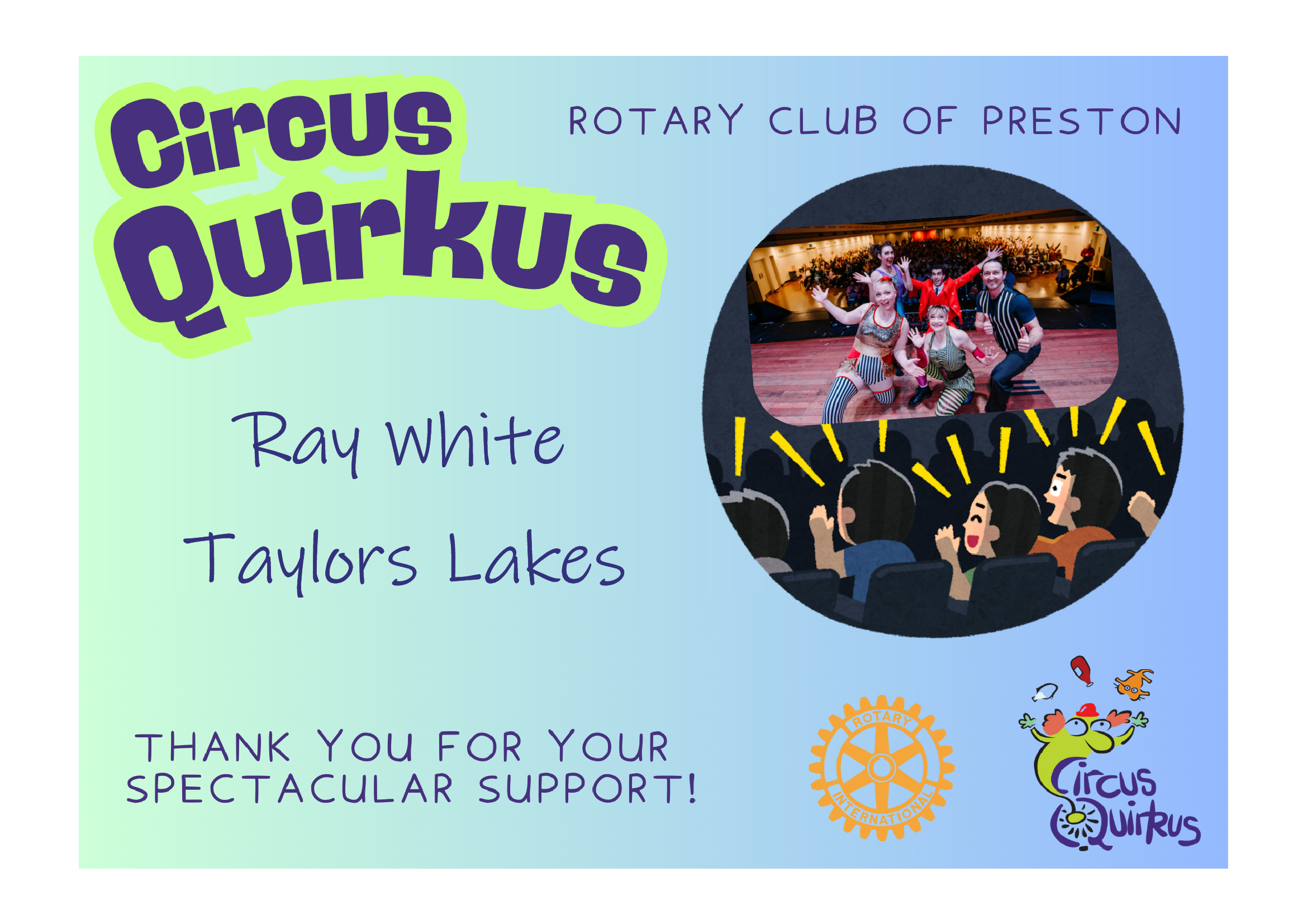 Ray White Taylors Lakes proudly supports the Rotary Club of Preston in their efforts to raise funds for charity. The club’s Circus Quirkus event, hosted with great honor, has profoundly impacted thousands of local children and families facing unique challenges. Through the generosity of businesses like ours, Circus Quirkus provides tickets to those who might not otherwise have the opportunity to experience such a spectacular 90-minute performance.