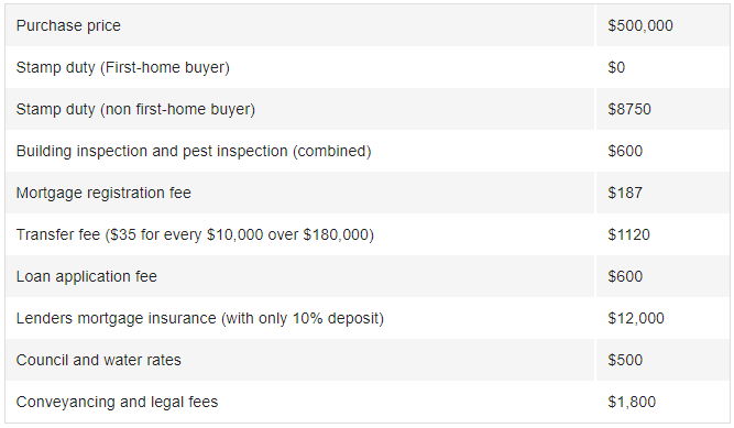 Let’s take an example of a $500,000 property in Queensland. What are the upfront and hidden costs?